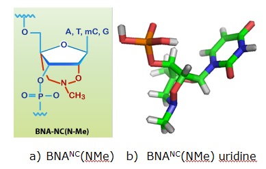Rahman SM, Seki S, Utsuki K, Obika S, Miyashita K, Imanishi T.; 2007. 2',4'-BNA(NC): a novel bridged nucleic acid analogue with excellent hybridizing and nuclease resistance profiles. Nucleosides Nucleotides. Nucleic Acids 26:1625–1628. http://dx.doi.org/10.1080/15257770701548980.
